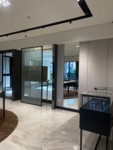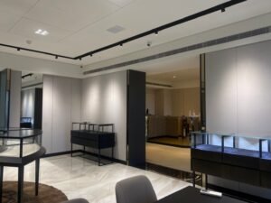 空間規劃兼顧動線流暢與私密性,設置專屬諮詢區與展示區,提供舒適且專業的購物體驗。細節處理講究,整體設計呈現輕奢質感,提升品牌形象與顧客信賴度。