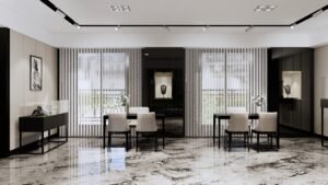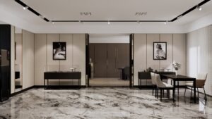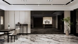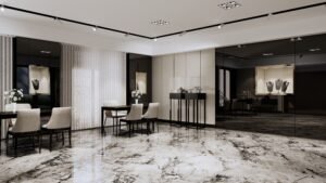 本案為珠寶店空間設計,採用輕奢風格為主軸,結合高質感大理石紋理與細膩金屬元素,打造出典雅且充滿現代感的展示環境。設計注重光影層次,透過點光源與柔和燈帶,聚焦珠寶精品的璀璨光芒,營造奢華而不張揚的氛圍。